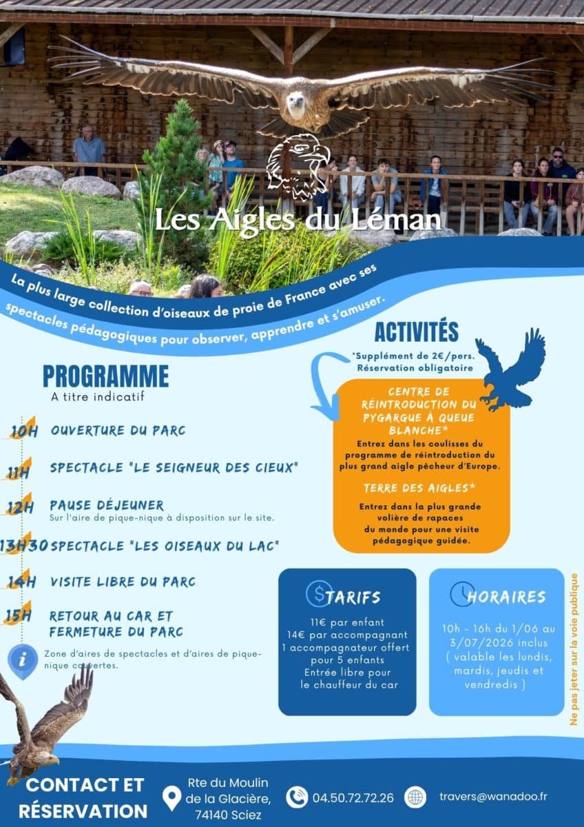 Should have any questions or to book your tickets directly, please feel free to contact us on 04 50 72 72 26 or by email at info@lesaiglesduleman.com