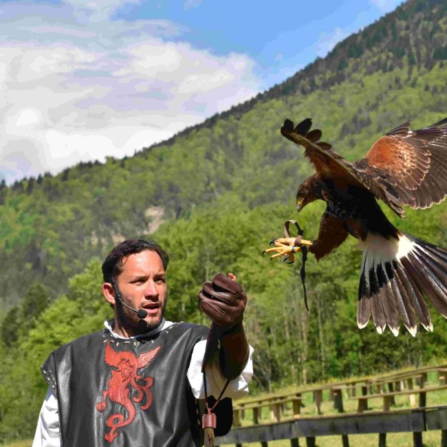 Discover the art of falconry and come in close proximity with the Raptors flying over your head. Le grand frisson au passage d’un aigle au-dessus de votre tête !